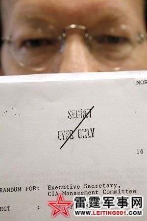 美国国家安全档案馆工作人员手持解密的中央情报局档案