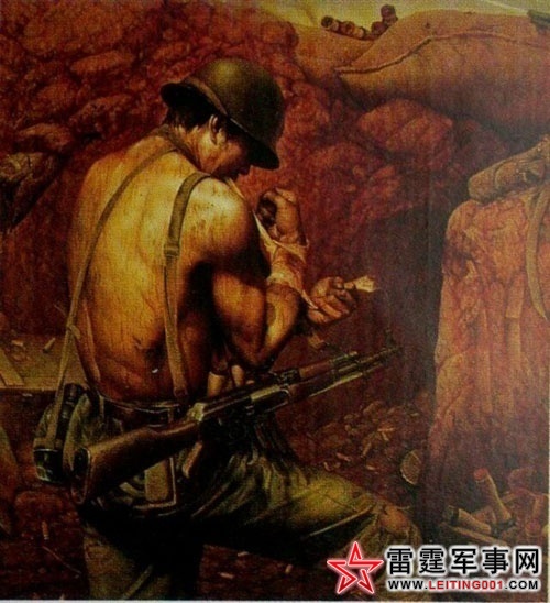不过,我发现,仗打得激烈时,我根本感觉不到疼。快接近山头时,山上突然响起了轻重机枪的扫射声,我们就地扑倒开始和山上的敌人对射。山下我们的坦克炮击得更激烈了,整座大山在晃动。有了前几次战斗的经验,我们已经知道如何保护自己了。特别是一些新兵,前几次冲锋时,他们就象电影上所描述的那样直着身子往前冲,很多人就那样无谓地牺牲了。现在,他们也知道保护自己了。由于敌人是居高临下,我们中有战友不断负伤。我们边射击,边借地形地物的掩护向上运动。很快我就进入了越南人射击的死角,我方的炮击已经停止了,阵地上残存的敌人已经不多了。在猛扔一通手榴弹后,连长一挥手,我们冲上了阵地。阵地上已经只剩下了几具敌人的尸体,怪事,人呢?刚才还有枪声的呢。我们边搜索边往前,突然从一个山洞中射出一串子弹,副连长一下子身中十几弹,当场牺牲。因为接触不多,副连长什么地方人,姓什么,我都不知道。我只记得,他个子不高,很瘦。说话喜欢把小胸脯挺挺的,眼光很税利,我们一下子全部扑倒。在向洞中射击的同时,把手榴弹一颗一颗地往里扔。可敌人仍在对外打枪。于是我们的喷火兵开始对里面喷火,直到里面没有枪弹射出。我们还没站稳脚跟,敌人就开始反扑了,原来越军的增援部队到了,而且已经开始组织反扑。我们立即占据有利地形向敌人射击。但敌人的火力真猛,我们的半自动步枪只能一枪一枪地打,而且,越南人特狡滑,兔子似的战术动作确实很到位,想打中真不是那么容易。我干脆把枪一扔,专门扔手榴弹。因为越南人在阵地上一个山洞里居然存有大量的弹药,手榴弹更是有无数箱,而且全是我们中国制造,我们用起来得心应手。于是我一颗接一颗的扔,一口气居然扔完了100多颗,越南连续发动的10多次冲锋都让我们打了下去。虽然是对手,我不得不承认,越南人打得很顽强,山坡上遗留了上百具敌人的尸体,友军这时也已经拿下了公路对面的山头并对我们提供火力支援。我们终于牢牢控制了这个高地,在这个高地上,我们连有20多位战友永远留在了那儿。连长头部也负伤了,但他坚决不肯下去,他说,他要把他带来的弟兄们最大限度地全部带回去。要离开弟兄们,他说他会疯掉的,连长是个山东汉子。