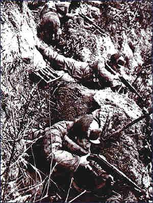 正准备迎接死亡的中国士兵感到奇怪:就快占领高地的敌人,听见号声,突然停止了射击,大祸临头似地向下狂奔!